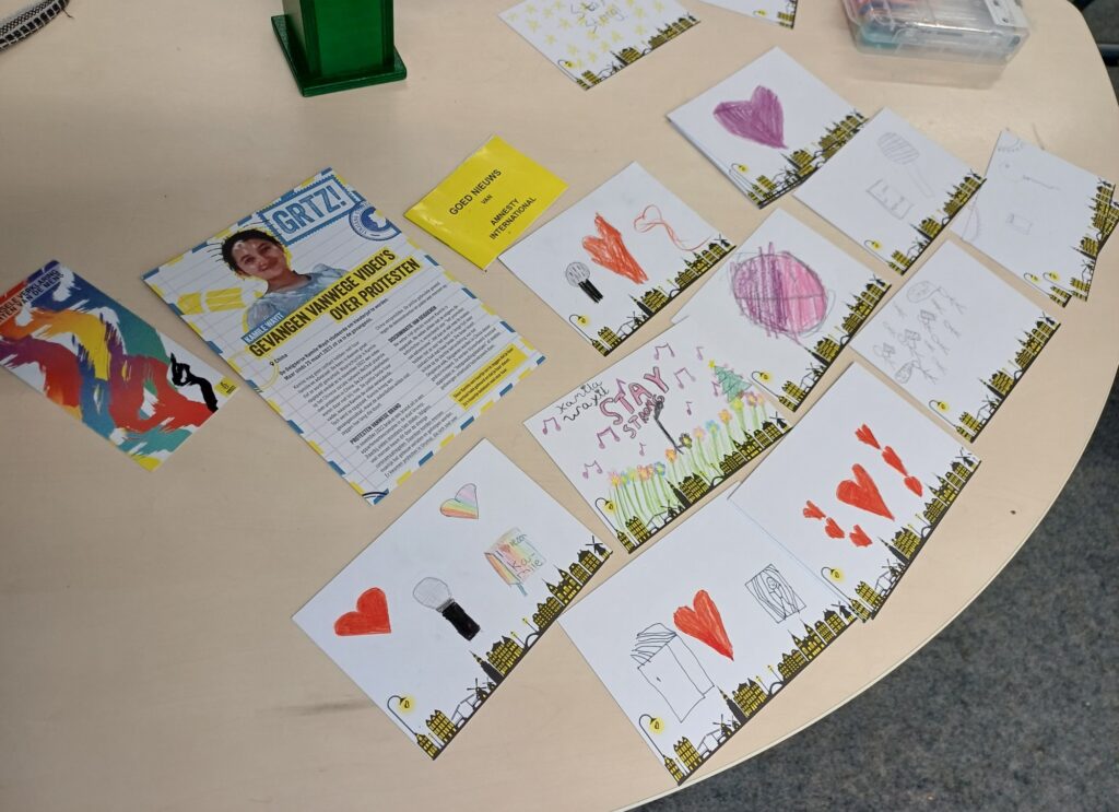 Na de veroordeling van Kamile Wayit riep Amnesty de Chinese autoriteiten op om haar onmiddellijk vrij te laten, aangezien zij slechts vreedzaam haar recht op vrijheid van meningsuiting uitoefende. In april 2023 startte Amnesty een spoedactie met een petitie waarin werd opgeroepen tot de onmiddellijke vrijlating van Wayit. Ook kon je Wayit een groetenkaartje sturen, om haar een hart onder de riem te steken. Ook in Apeldoorn hebben gastdocenten van Amnesty tijdens diverse gastlessen voor groep 8 van de basisscholen kinderen mooie tekeningen laten maken voor Kamile. Het zal haar zeker goed hebben gedaan!